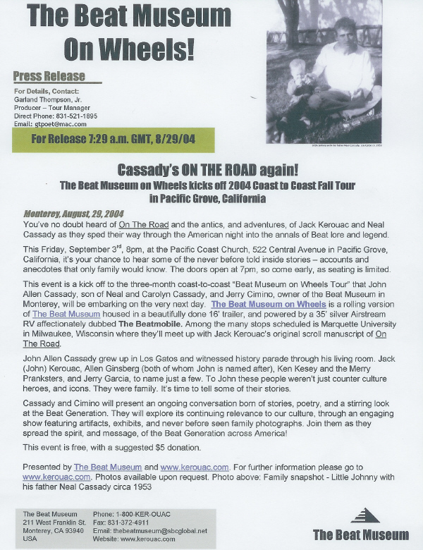Monterey, CA 93940, Web Master Matthew Fox. To contact Click. books by the beat generation authors and poets, audio-books, biographies, literary criticism, related works, videos, music, multi-media, photos, posters, beat shirts, jazz shirts and gifts